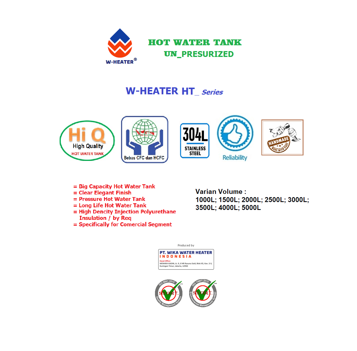 W-Heater HOT WATER TANK Adalah Solusi Tangki Air Panas hemat pompa system yang sangat tepat untuk Bisnis Komersial, Hotel, Apartemen, Rumah Sakit dan Industri. Untuk keterangan lebih lanjut dan order hubungi admin